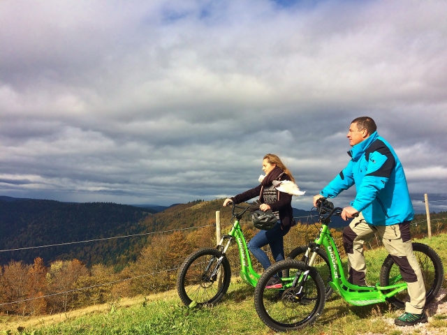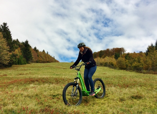 Profitez d’une belle balade (en descente uniquement, nos trottinettes ne sont en effet pas motorisées) au cœur du massif des Vosges grâce aux trottinettes tout terrain Globe 3t du Refuge du Sotré !